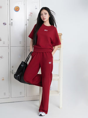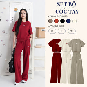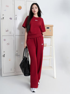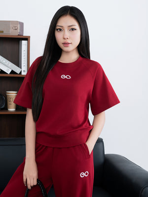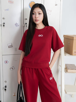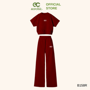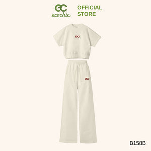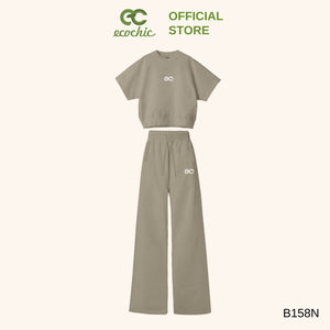 Home Set ECOCHIC NEW LOGO Crop Shirt with Hem and High Waist Pants with Embroidered Logo New 2025 EC High Quality Genuine Anti-Wrinkle B158