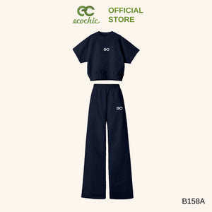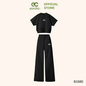 Set ECOCHIC NEW LOGO Crop Shirt with Hem and High Waist Pants with Embroidered Logo New 2025 EC High Quality Genuine Anti-Wrinkle B158