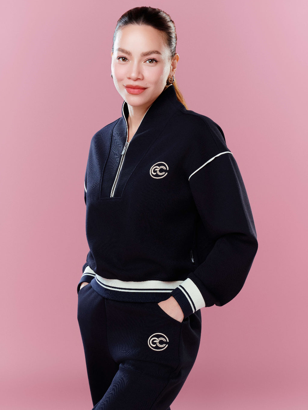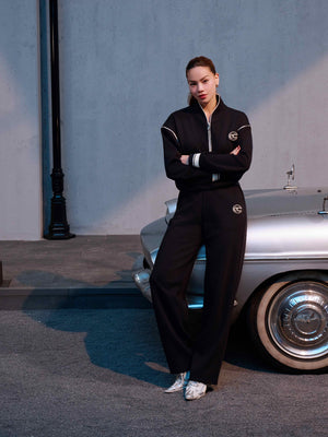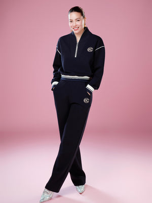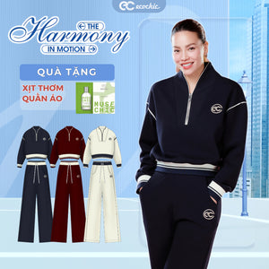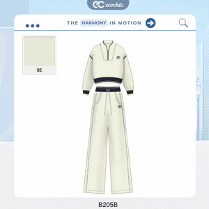 Set of ECOCHIC SYNC MOVE Zip-up Crop Top with Hem and Drawstring Straight Pants, High Quality Genuine Material HNH B205
