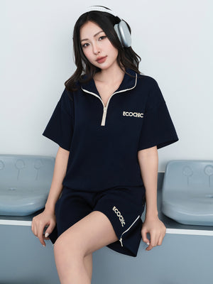 ISA ECOCHIC SUMMER SET High Neck Shirt, Half Sleeve, Zippered Shorts, High Quality, Genuine B143