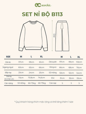 Home ECOCHIC BASIC SWEAT SET Men's Women's Unisex Set of High-Quality Long Shirt and Pants with New Technology Genuine B113