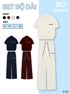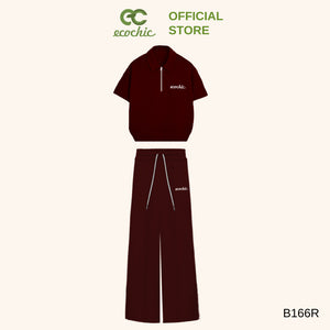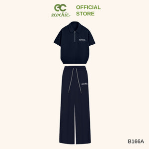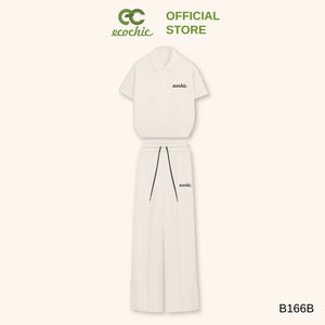 ECOCHIC Polo Set Zip Up Polo Shirt High Waisted Pants Embroidered Letters Genuine High Quality Material B166
