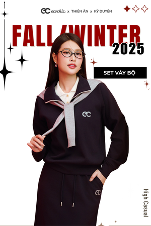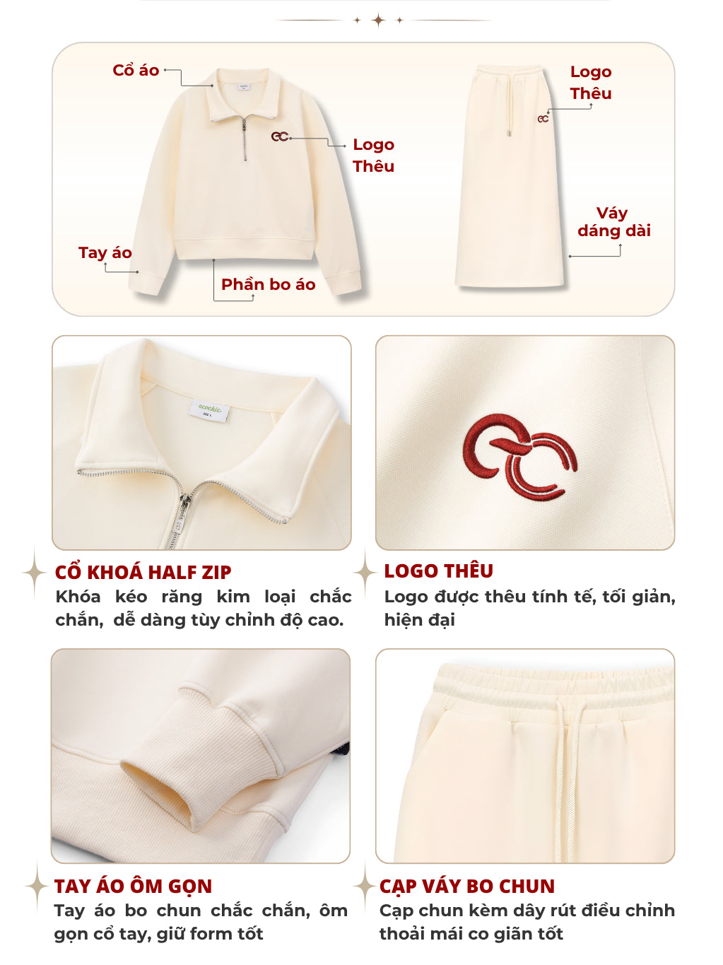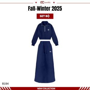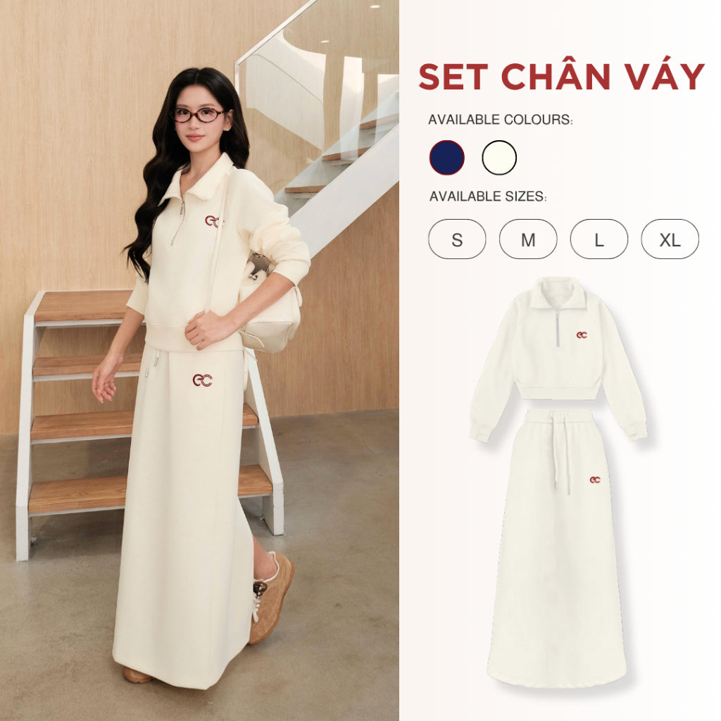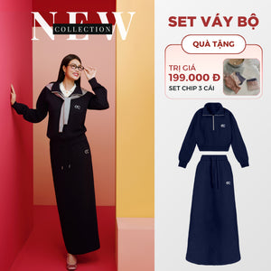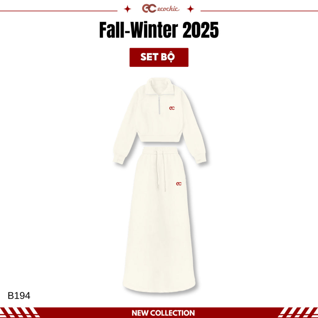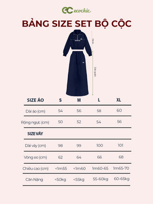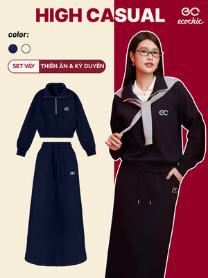 ECOCHIC Long Dress Set with High Neck Crop Top Halfzip Logo and Long Drawstring Skirt High Quality Genuine Material B194
