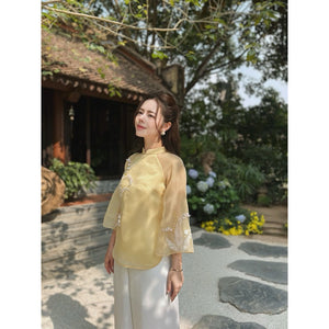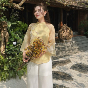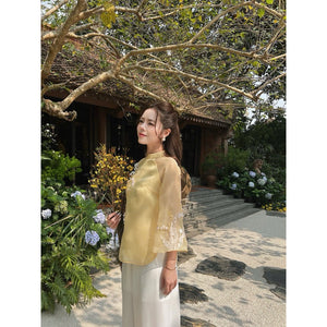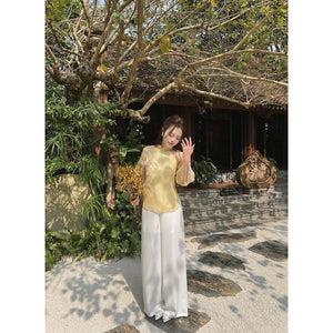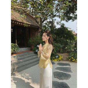 [PRE-ORDER] Thuc Chi Buddhist robe set with flowers (pants included)