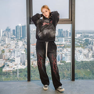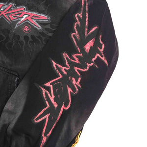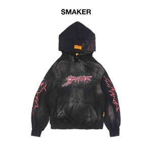 [SMAKER] 100% cotton washed fleece hoodie in gray with thick pink print - VINTAGE $MAKER WASHED HOODIE IN GREY
