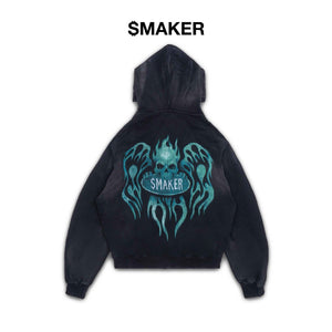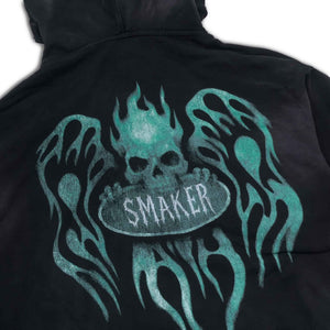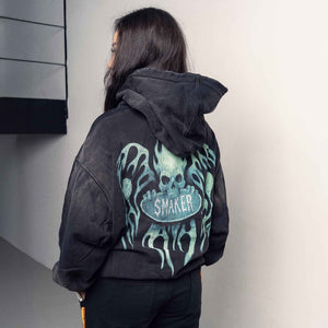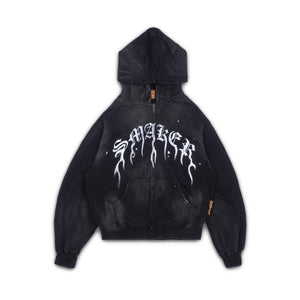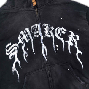 [SMAKER] FLAME $MAKER WASHED ZIP HOODIE IN BLACK 100% cotton black flame-patterned sun-protective jacket