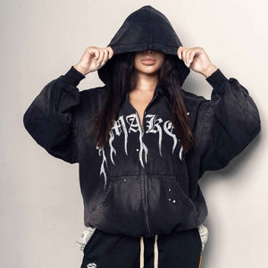 FLAME $MAKER WASHED ZIP HOODIE IN BLACK