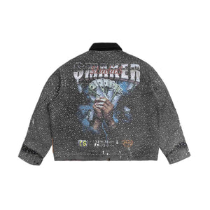 $MAKER $TUDIO $WAROVSKI WASHED WORKER JACKET IN GRAY