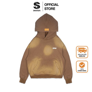 [SMAKER] 100% cotton washed brown hoodie - METAL LOGO WASHED HOODIE IN BROWN