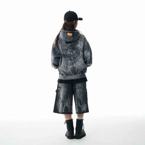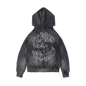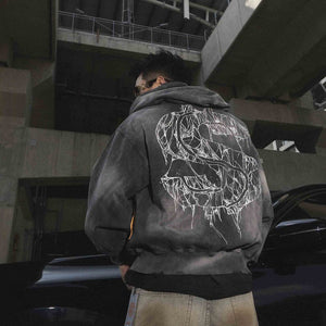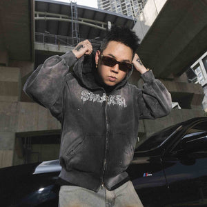 $MAKER WEB DOUBLE ZIPS WASHED HOODIE IN GRAY