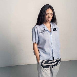 [SMAKER] Linen white and blue striped shirt - IN SHAWTY WE DONT STRIPE SHIRT IN BLUE