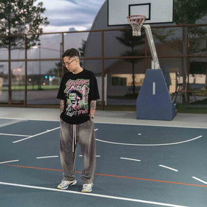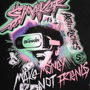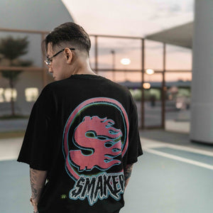 [SMAKER] 100% cotton washed black T-shirt - PATH TO RICHES WASHED TEE IN BLACK