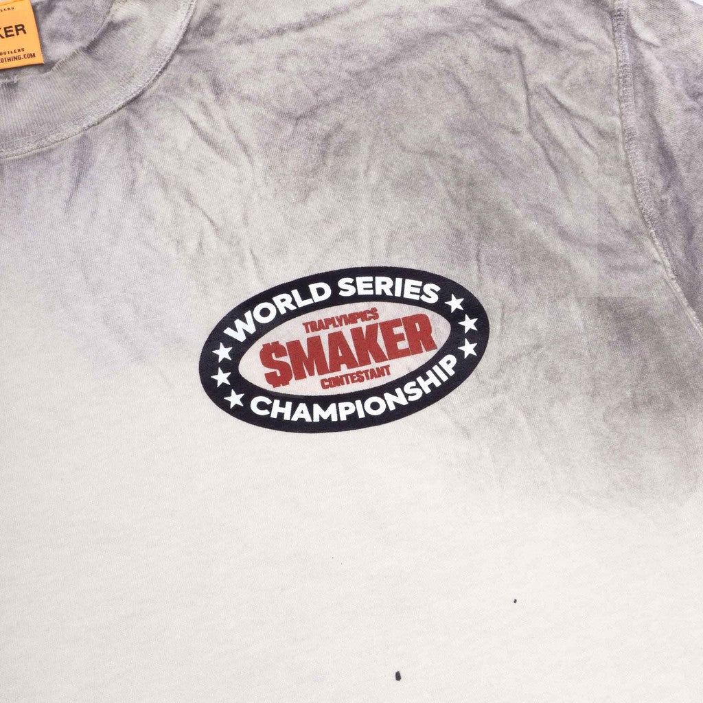 [SMAKER] 100% cotton washed white T-shirt - TRAPLYMPIC WASHED TEE IN CREAM