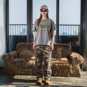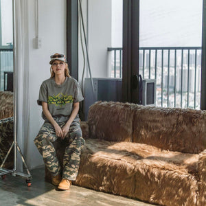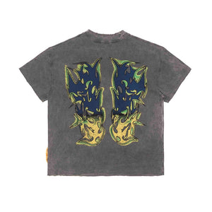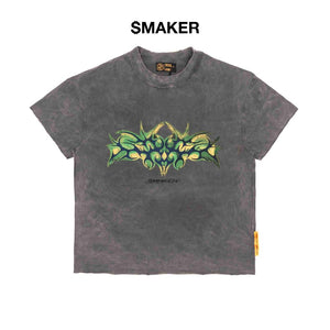 [SMAKER] 100% cotton washed gray t-shirt - TRIBAL LOGO WASHED TEE IN GRAY