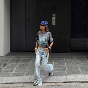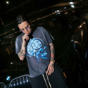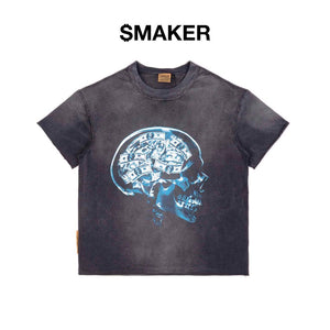 [SMAKER] Unisex 100% cotton washed gray t-shirt - MONEY IN MY MIND WASHED TEE IN GRAY