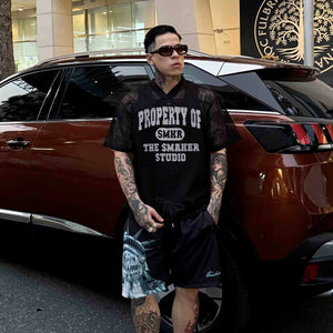 [SMAKER] Black printed mesh T-shirt - PROPERTY MESH BOXY TEE IN BLACK