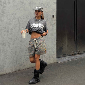 [SMAKER] Short khaki shorts with soldier pattern - LOGO KHAKI SHORTS IN CAMO