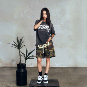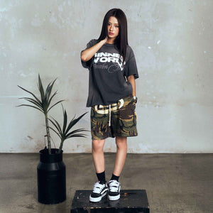 [SMAKER] Short-form fleece shorts with soldier pattern - BIG LOGO SWEAT SHORTS IN CAMO