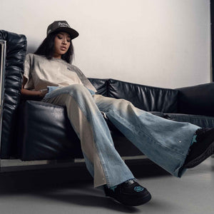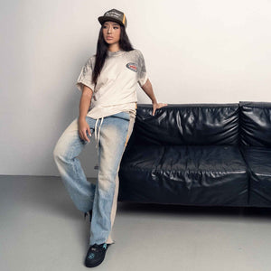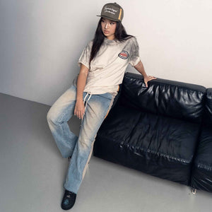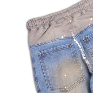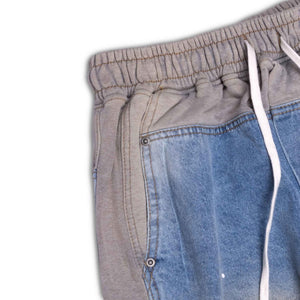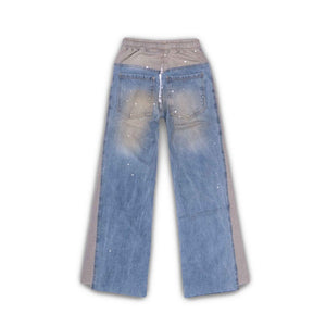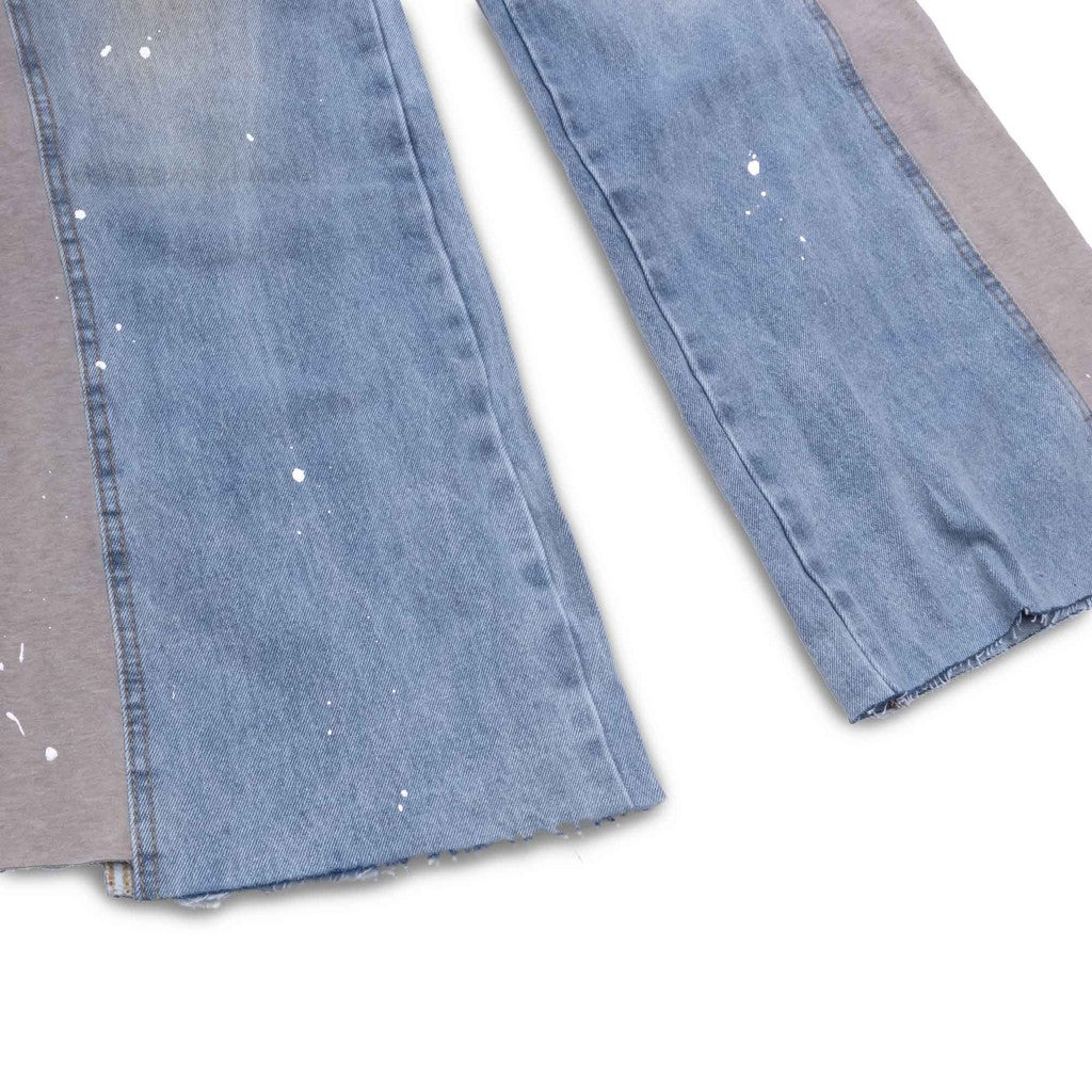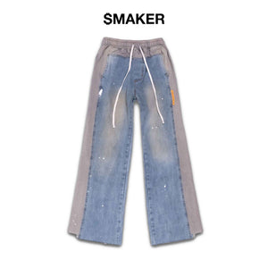 [SMAKER] Men's flared jeans with gray and blue fabric, street style - SWEAT PANTS MIX JEANS