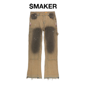 [SMAKER] SPLASHED FLARE JEANS IN DIRT BROWN