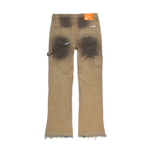 SPLASHED FLARE JEANS IN DIRT BROWN