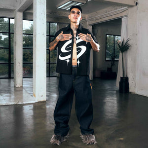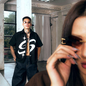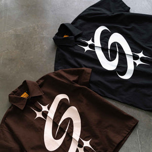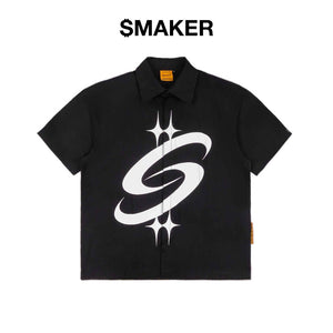 [SMAKER] Black loose-fit khaki short-sleeved shirt - BIG LOGO KHAKI SHIRT IN BLACK