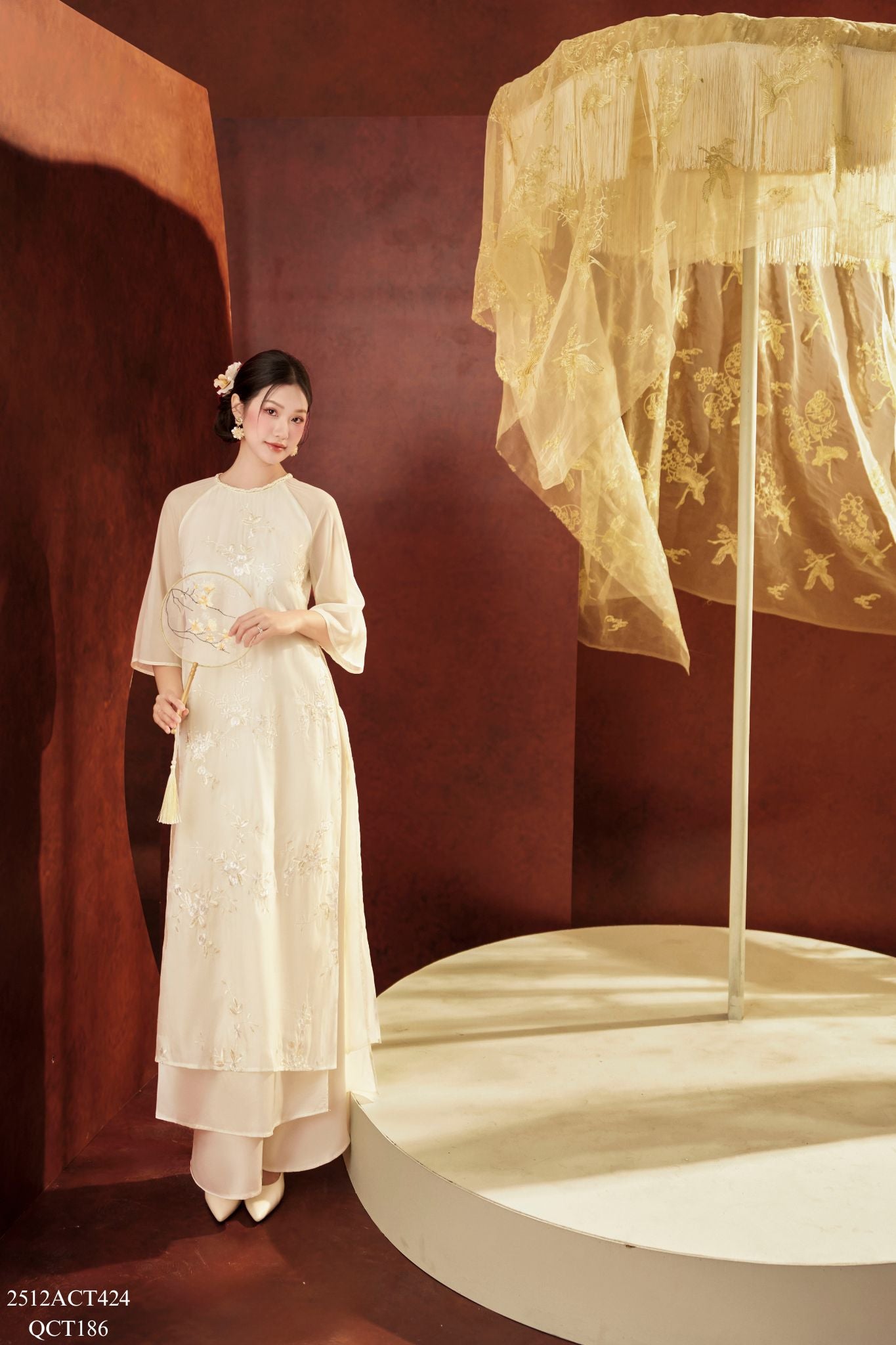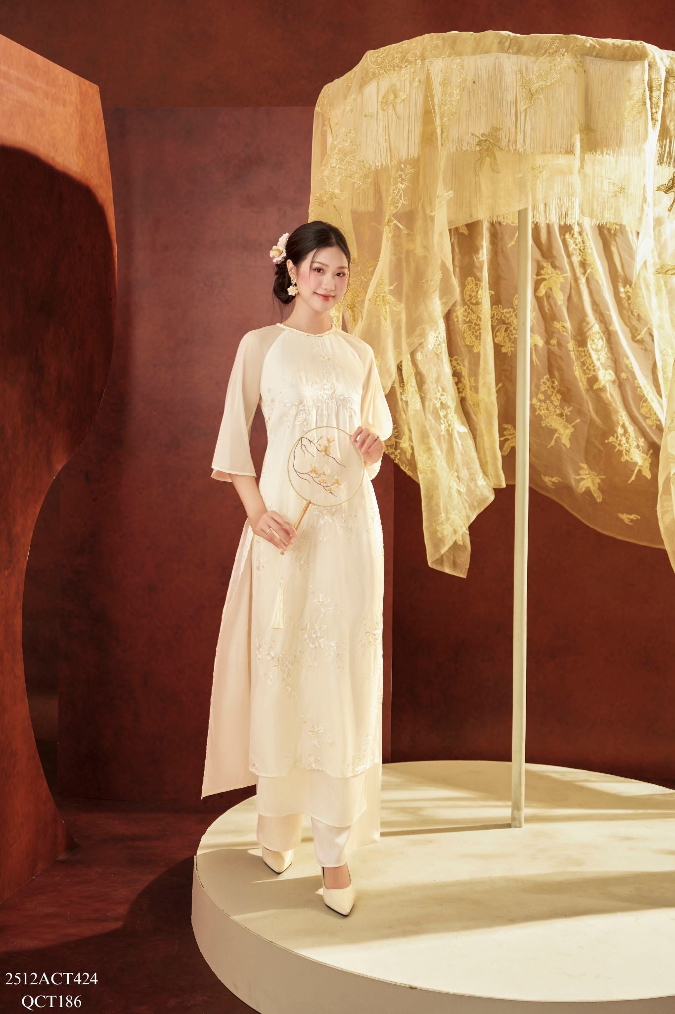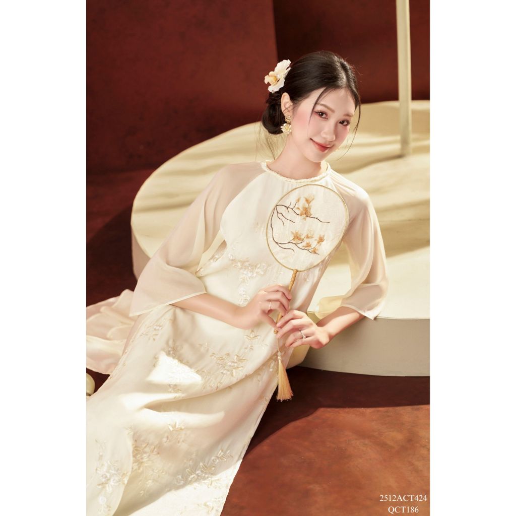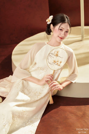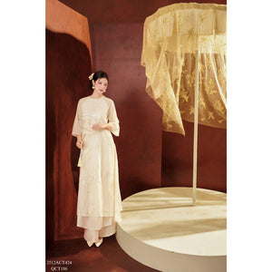 Traditional Tet Ao Dai dress with round neckline and embellished details (Pants not included) 2512ACT424