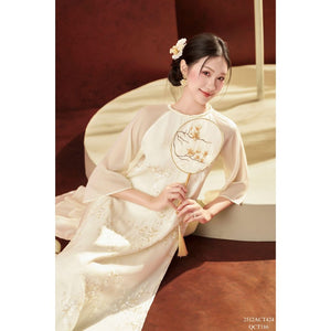 Product Information: TIINSTORE Traditional Vietnamese Ao Dai for women, round neck design with embellished details (Pants not included) Lightweight Ao Dai for Tet (Vietnamese New Year) 2512ACT424