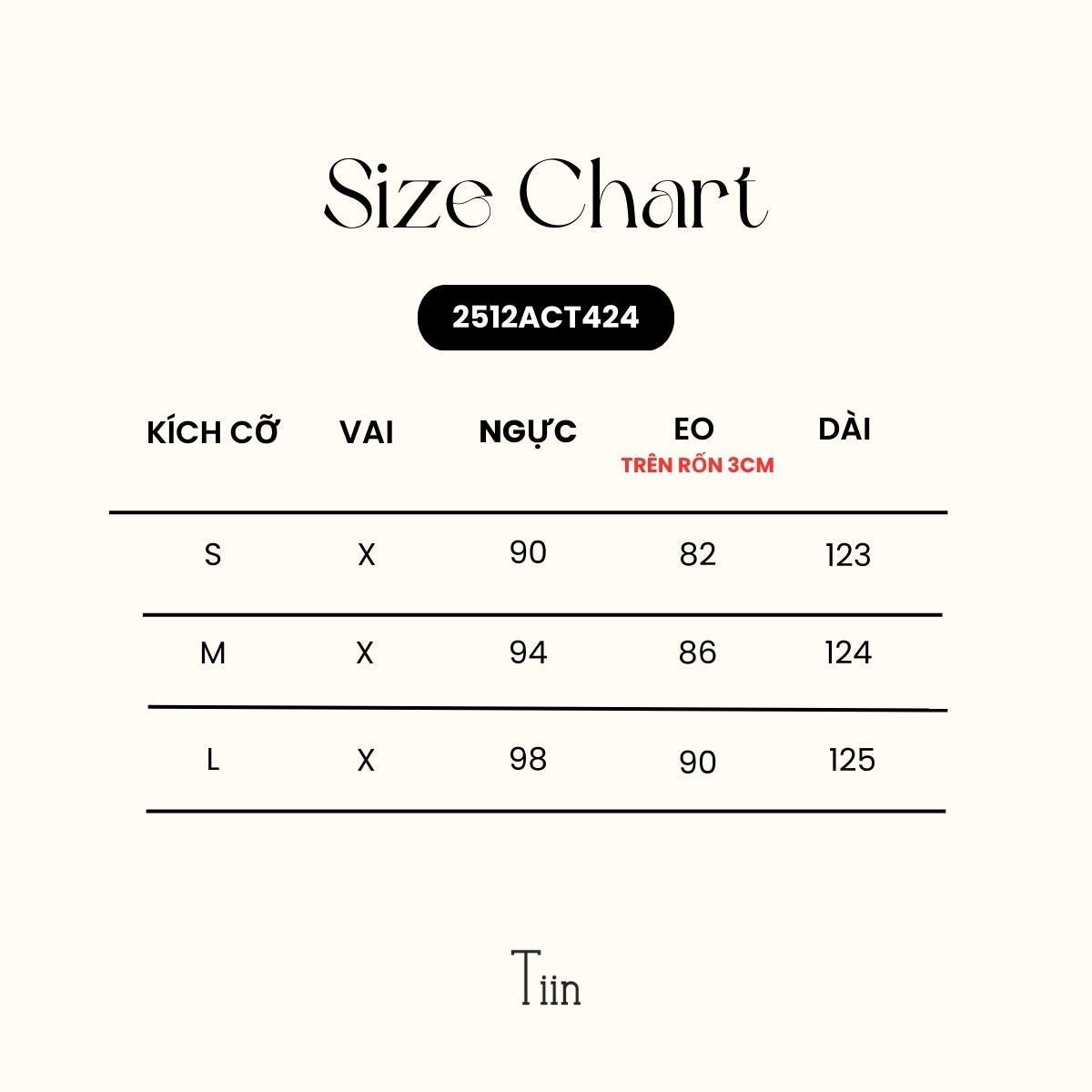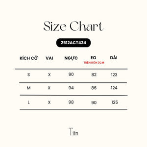 The size chart is for reference only; there may be slight variations depending on individual body measurements and fabric material. If this is your first purchase or you are unsure about sizing, please inbox Tiin for advice on the appropriate size.