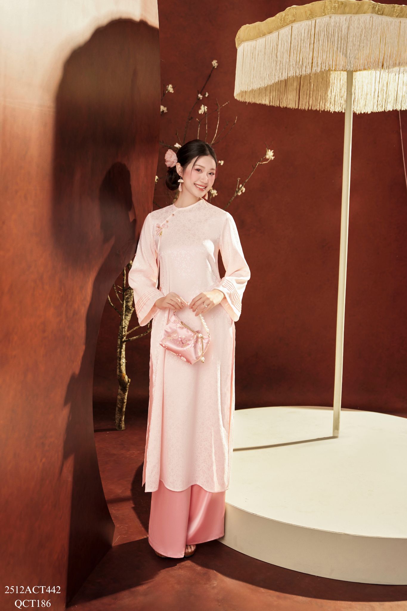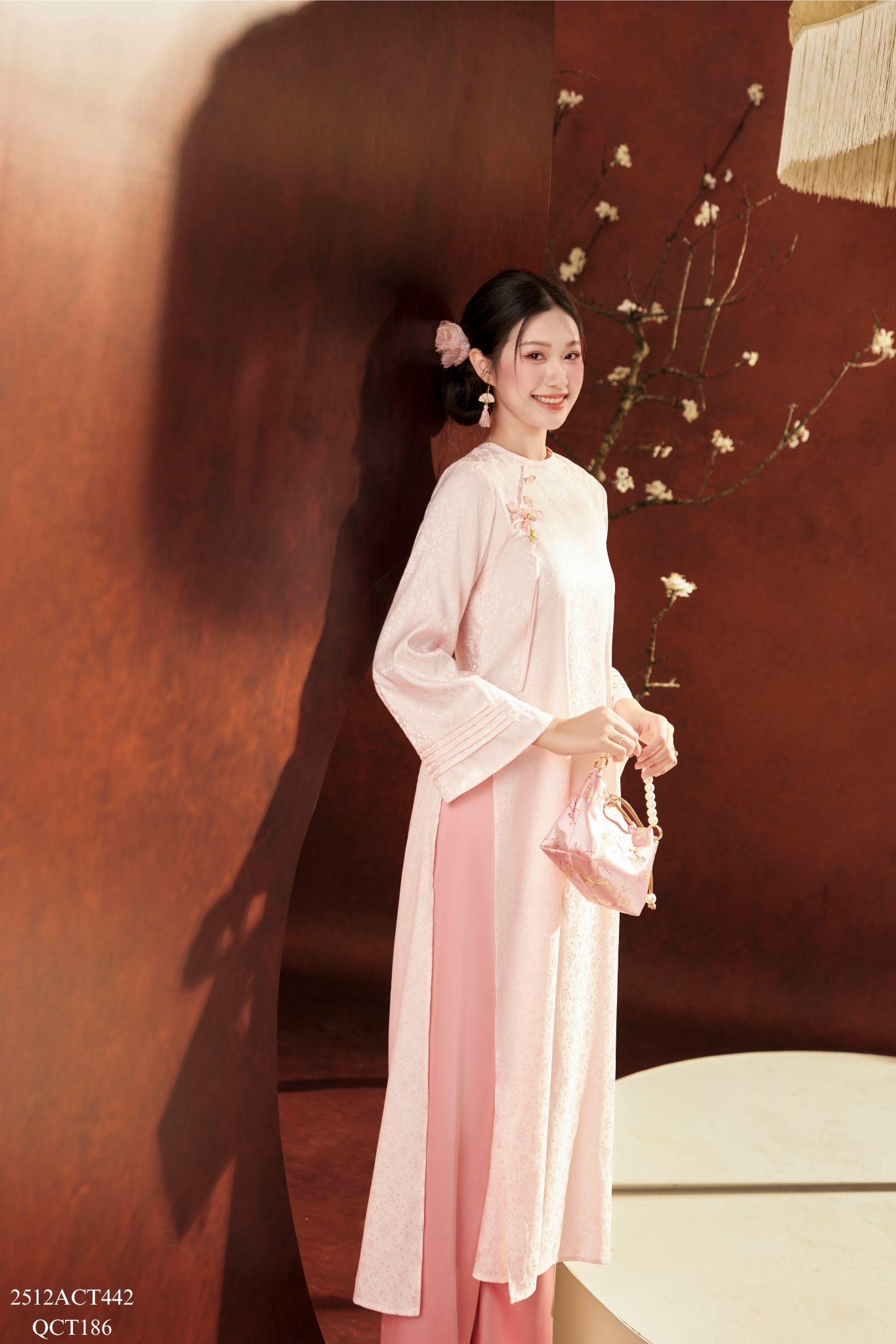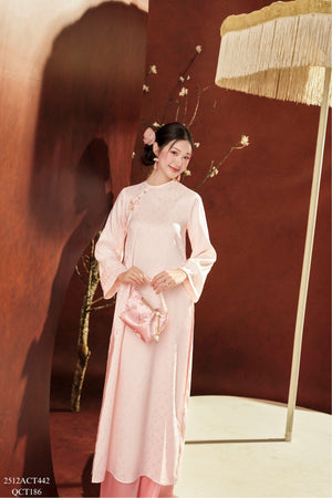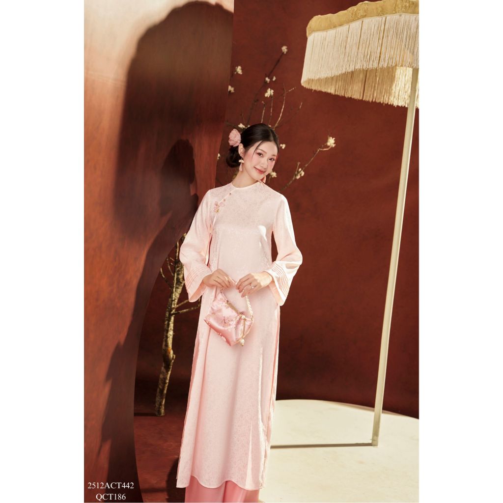 Traditional Tet Ao Dai dress with round neck and flared sleeves (Pants not included) 2512ACT442