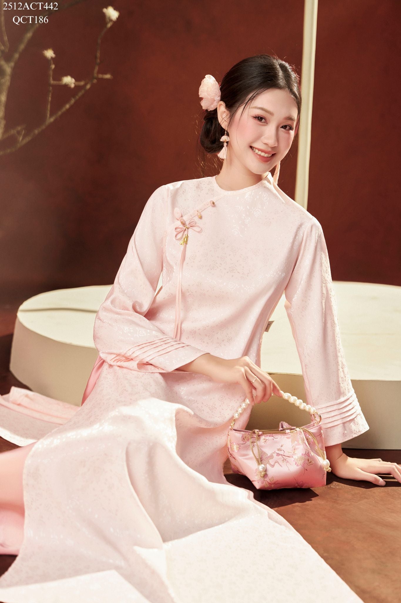 Home Traditional Tet Ao Dai dress with round neck and flared sleeves (Pants not included) 2512ACT442