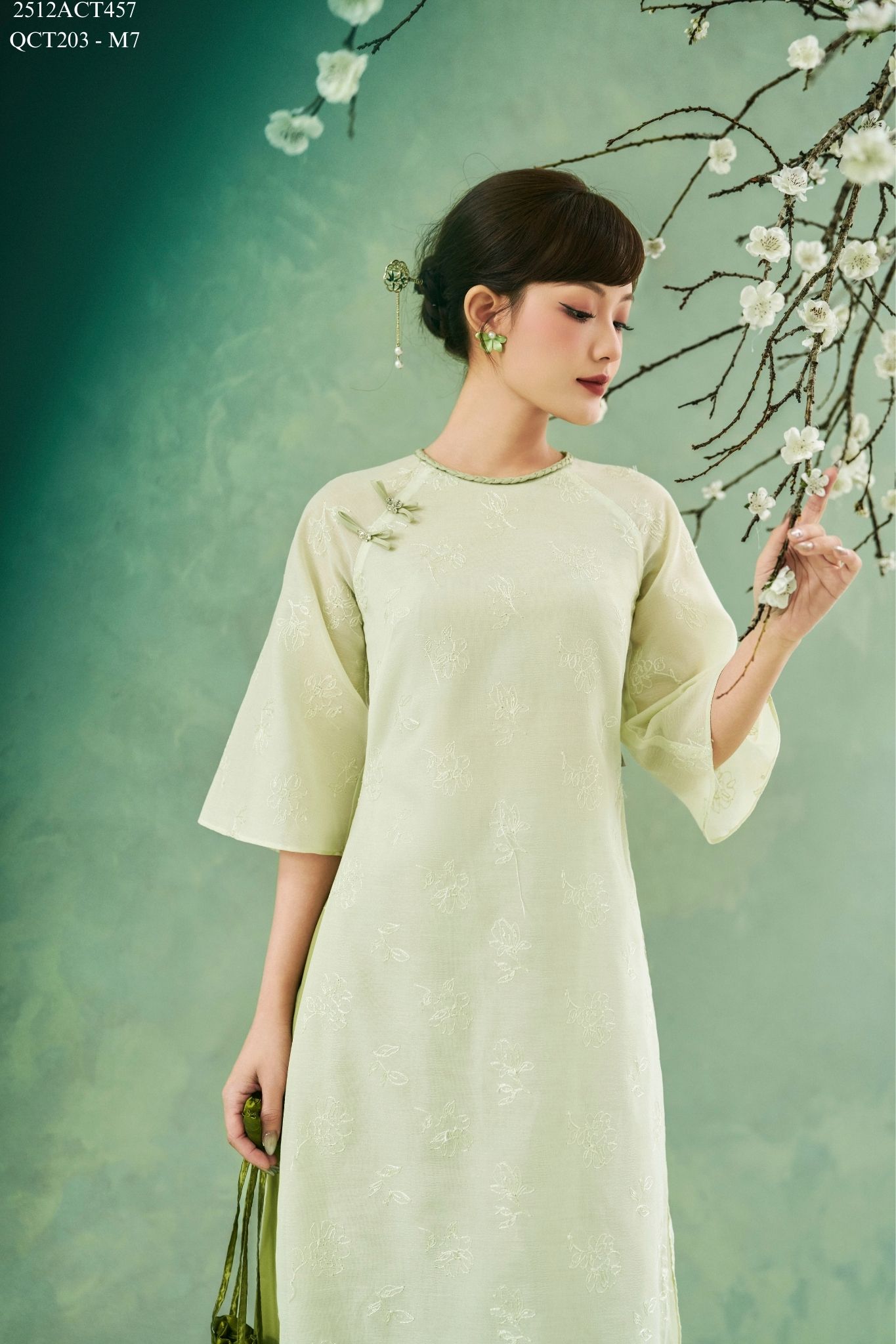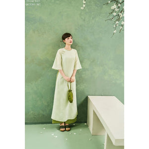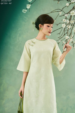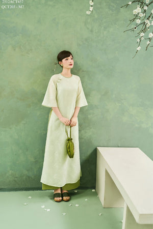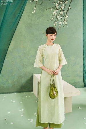 Home Traditional Tet Ao Dai dress with round neckline and bow embellishment (Pants not included) 2512ACT457