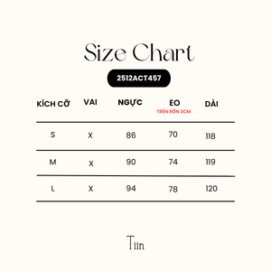 The size chart is for reference only; there may be slight variations depending on individual body measurements and fabric material. If this is your first purchase or you are unsure about sizing, please inbox Tiin for advice on the appropriate size.