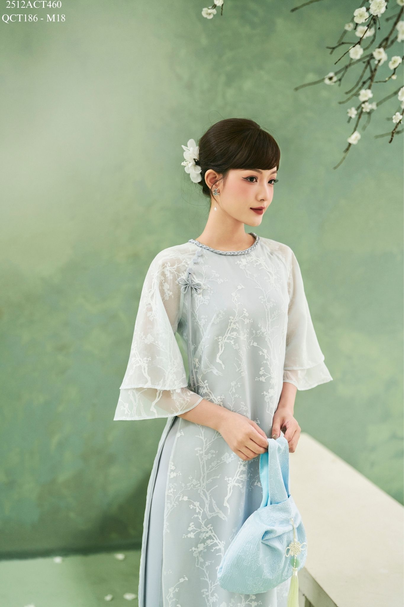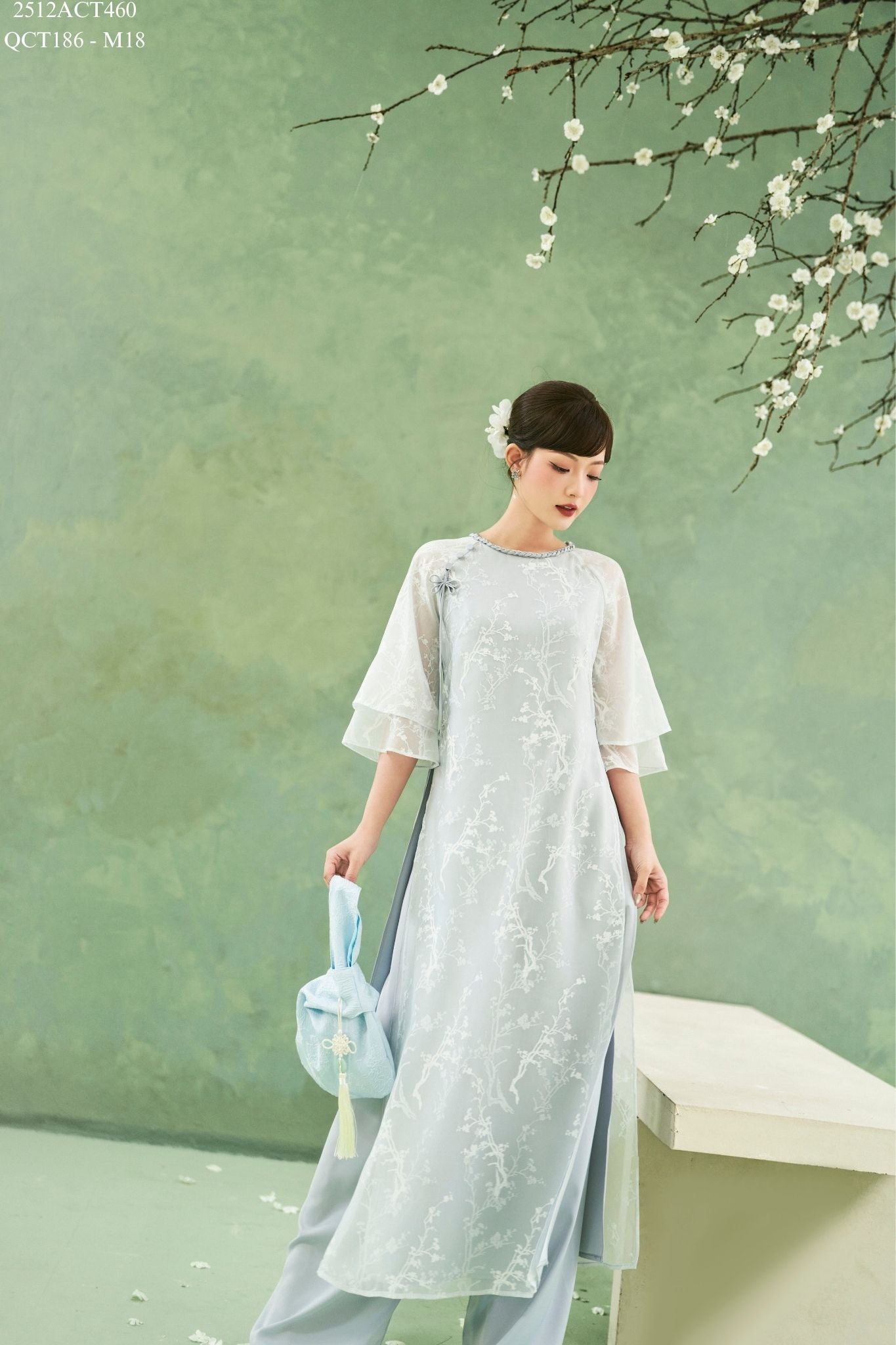 Traditional Tet Ao Dai dress with round neckline and flared sleeves (Pants not included) 2512ACT460