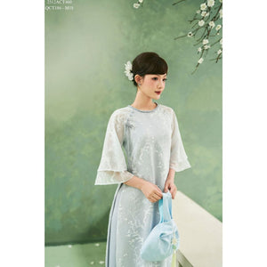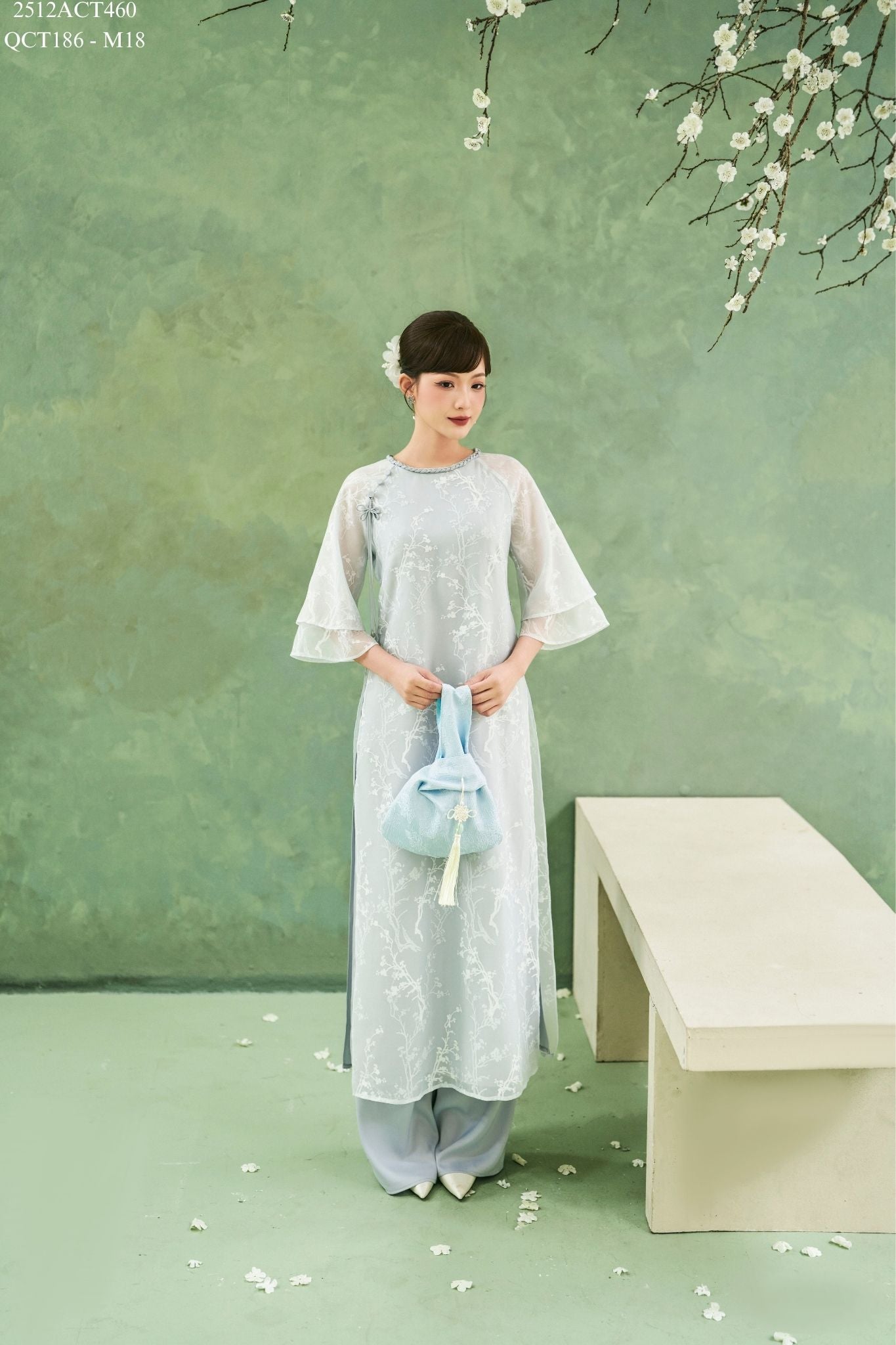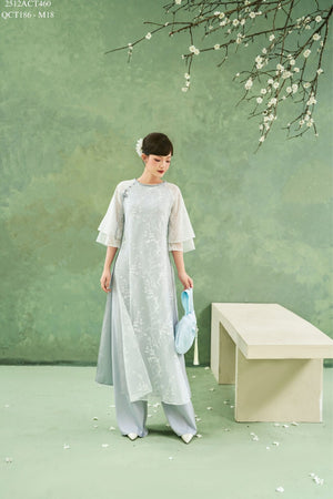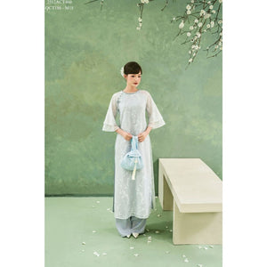 Home Traditional Tet Ao Dai dress with round neckline and flared sleeves (Pants not included) 2512ACT460