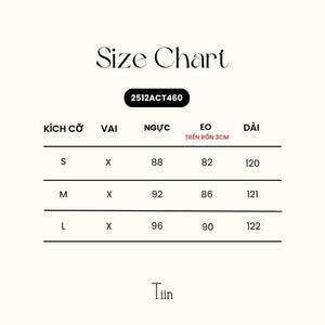 The size chart is for reference only; there may be slight variations depending on individual body measurements and fabric material. If this is your first purchase or you are unsure about sizing, please inbox Tiin for advice on the appropriate size.