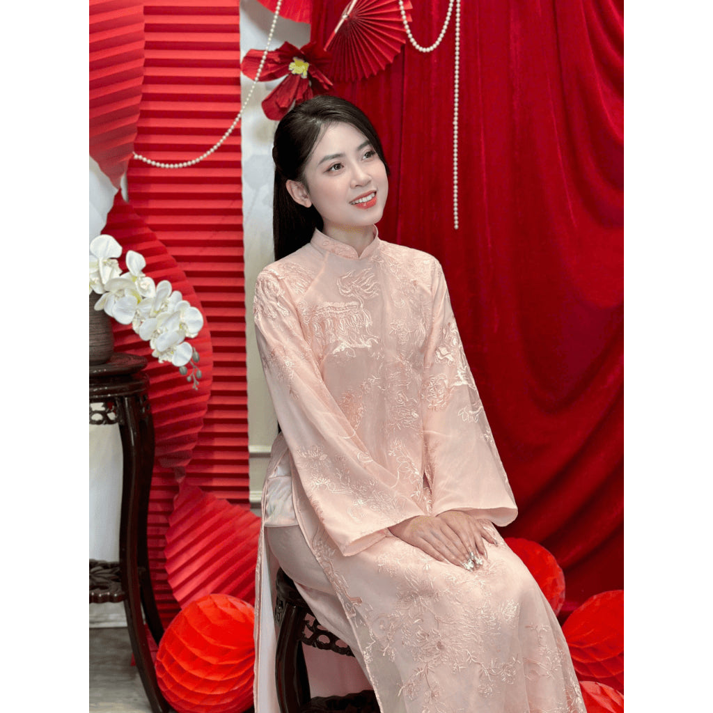 Home [VAN AN - TET 2026] BICH SU Ao Dai - Straight Fit, Long Sleeves - High Quality Oganza Silk Material with Unicorn Embroidered Pattern - (AVAILABLE)
