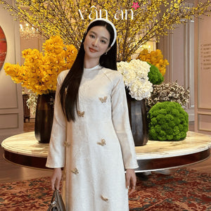 [VAN AN - TET 2026] LAM YEN Ao Dai - Straight Fit, Long Sleeves - Woven Floral Chau Sa Brocade Material, Charms on the Hem