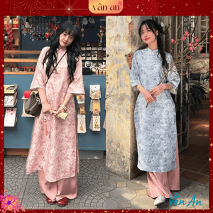[VAN AN - TET 2026] TRUC LAM Ao Dai - Straight cut, Half sleeves, Two panels - Woven brocade material, floral charm on collar