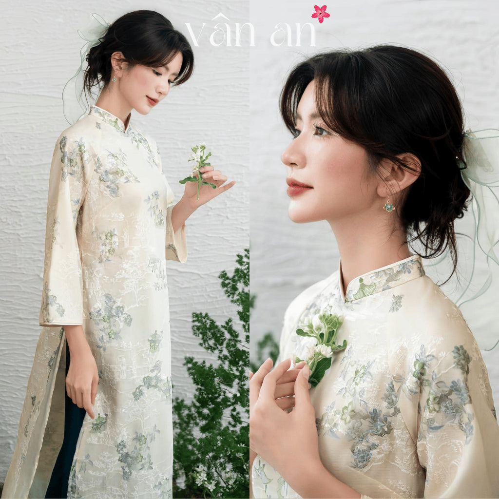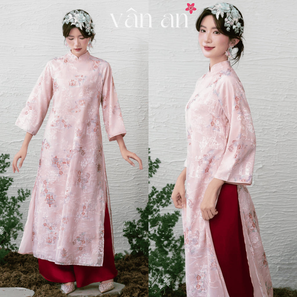 [VAN AN] TU DIEP Ao Dai - TET Ao Dai - 4-Panel Design, High-Quality Silk Material Printed with Elegant, Gentle Patterns - (AVAILABLE)