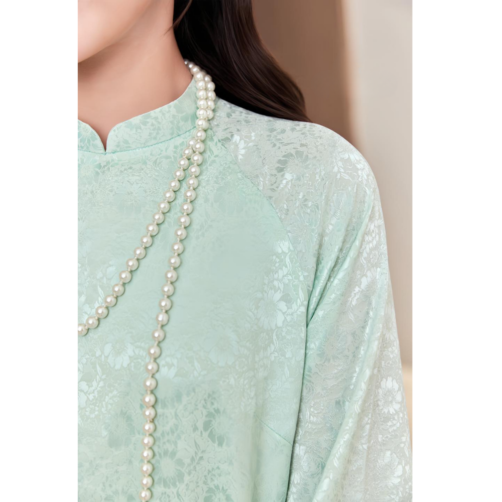 Tên sản phẩm: Áo Dài Cách Tân CÚC HỌA MI Dáng Suông Vải Gấm, May 4 Tà Lót Lụa phom tay Loe - ÁO Dài Mộc An