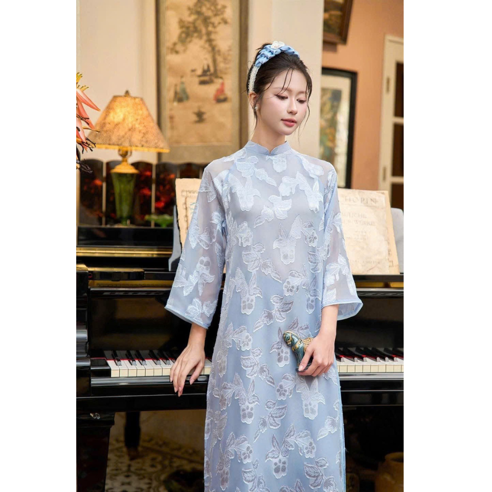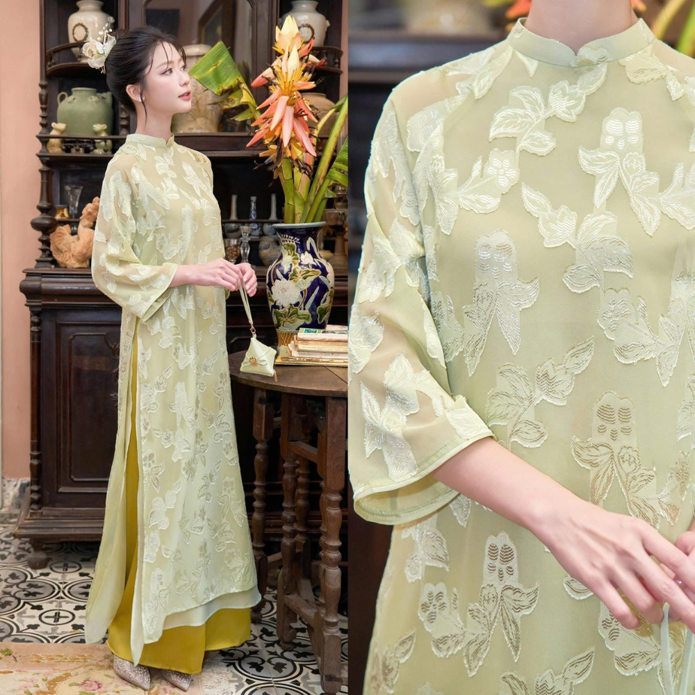 Áo Dài Cách Tân Dáng Xuông DƯ HY vải voan may 4 tà Thướt Tha - Áo Dài Mộc An Chính Hãng