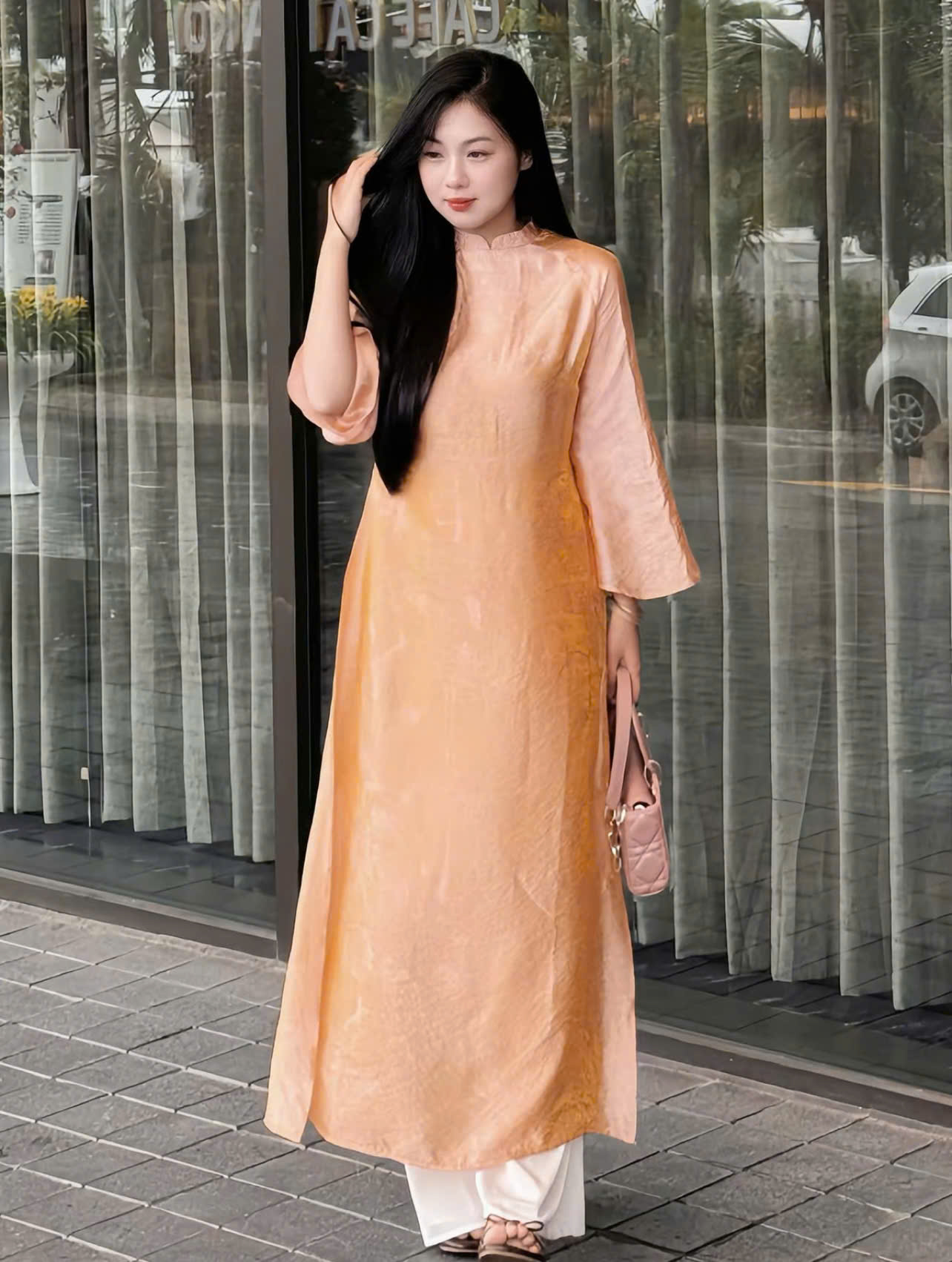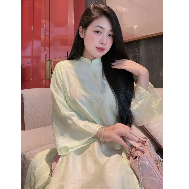 Tên sản phẩm: Áo Dài Dáng Suông TUYẾT MAI, Vải Gấm Tơ Ánh Kim vân Nhăn Dáng Suông Tay Loe Có Đủ Màu