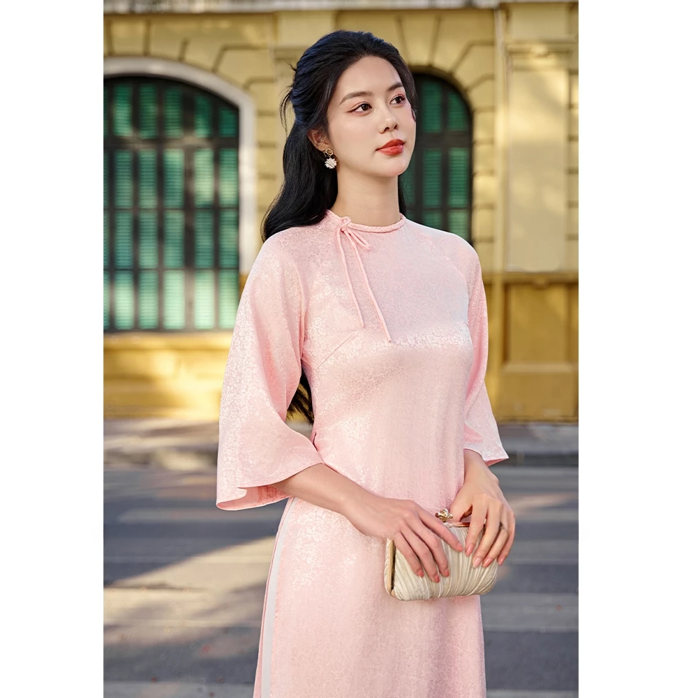 Áo Dài Gấm Dáng suông Cổ Tết đính nơ, áo cách tân hotrend 2026 - Áo Dài Mộc An