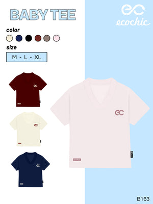 Áo Phông Baby Tee Cổ Tim ECOCHIC Chất Liệu Thun Mỹ Co Giãn 4 Chiều Vừa Vặn Local Brand Chính Hãng B163