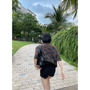Thiết kế ô vuông chéo toàn thân. Hoạ tiết được in lụa.