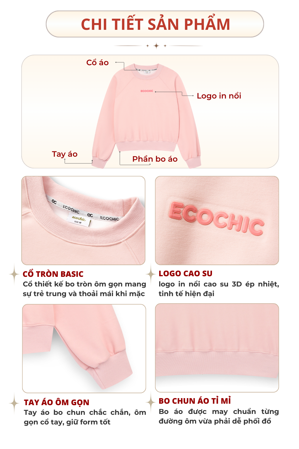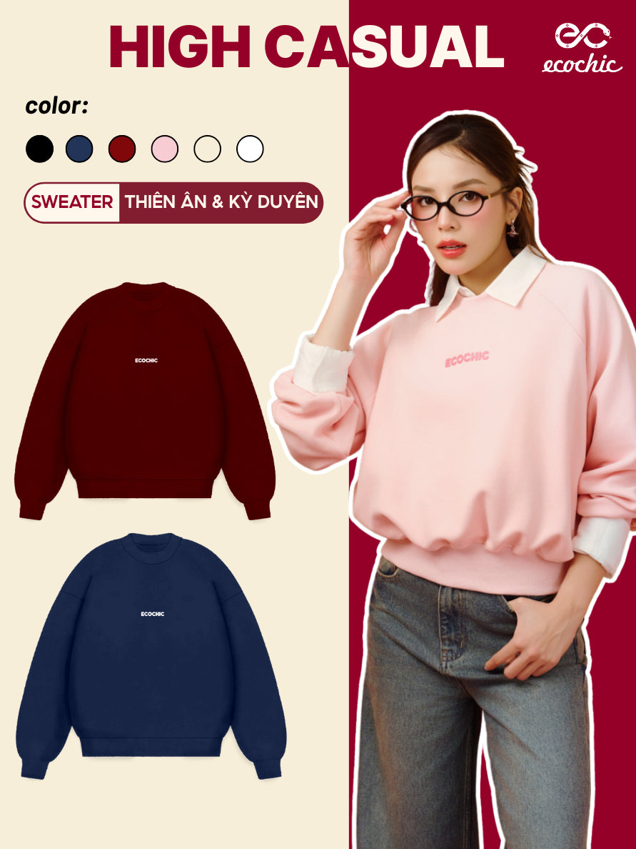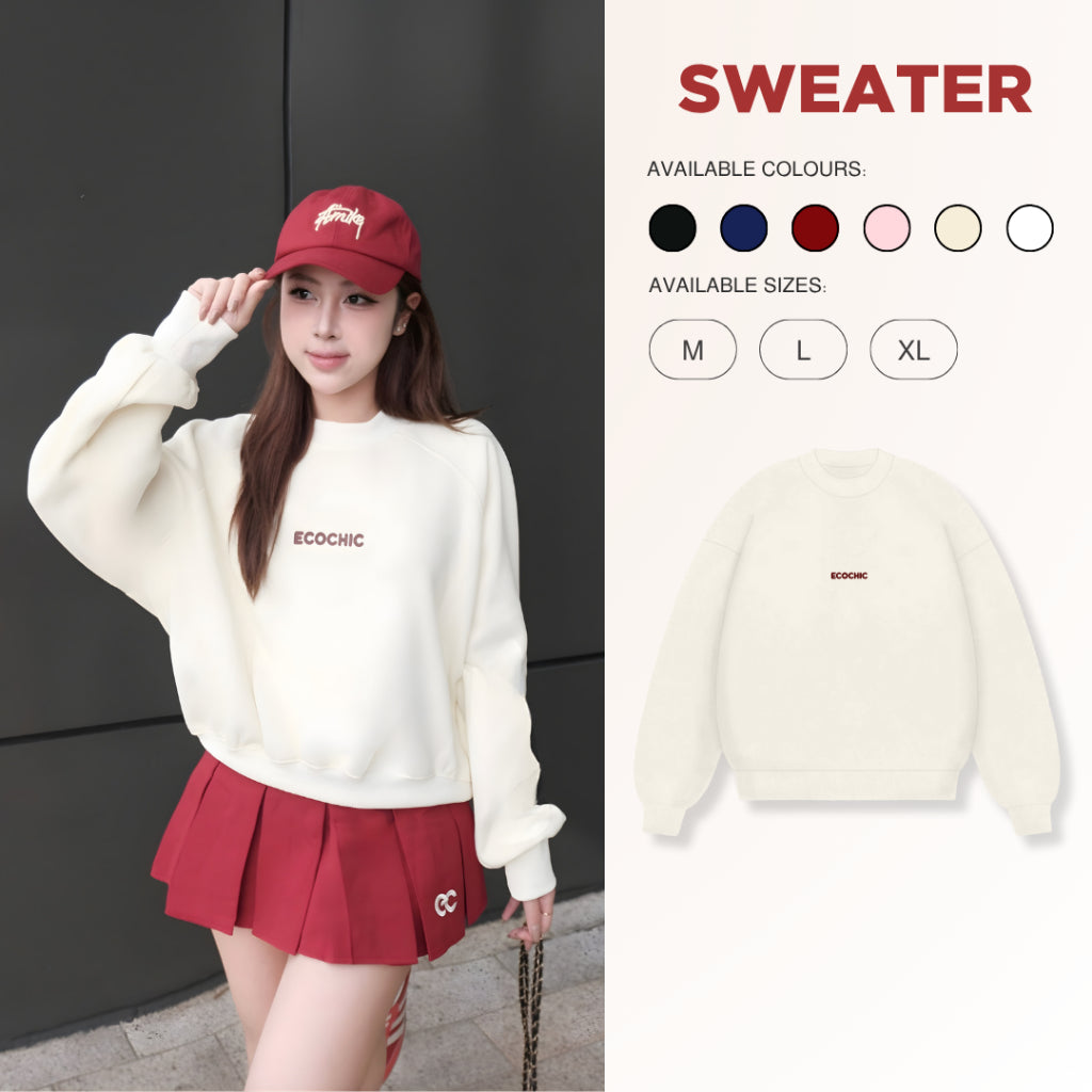 Áo Sweater ECOCHIC ARCTIC BLOOM Basic Cổ Tròn Logo Ngực Chất Liệu Nỉ Hai Da Cao Cấp Chính Hãng B192