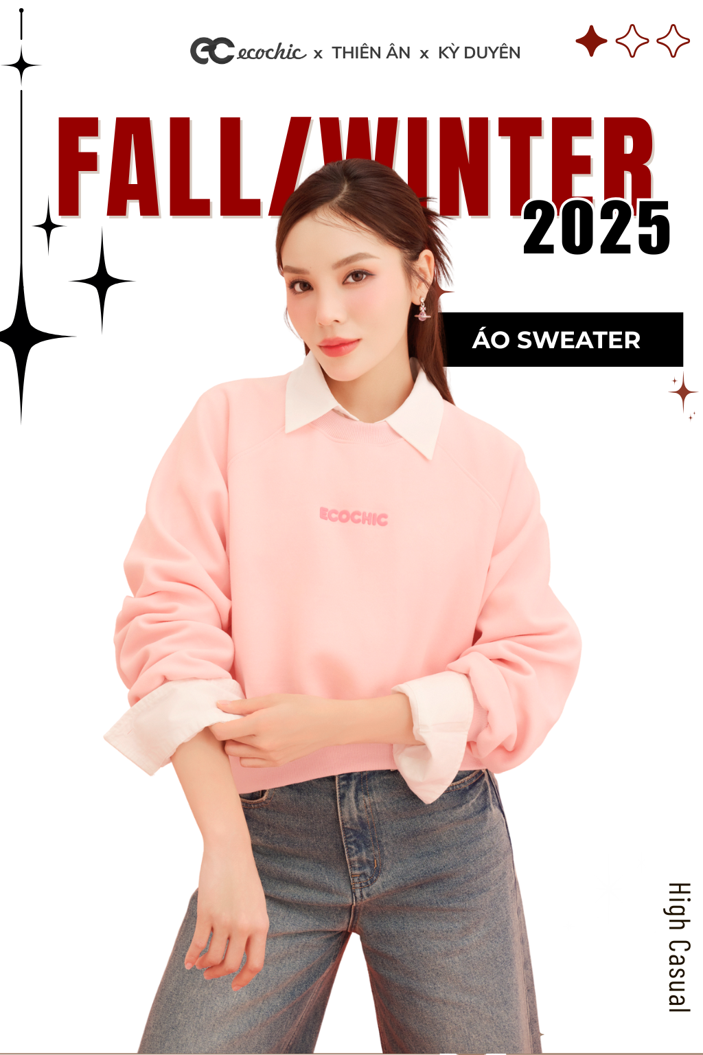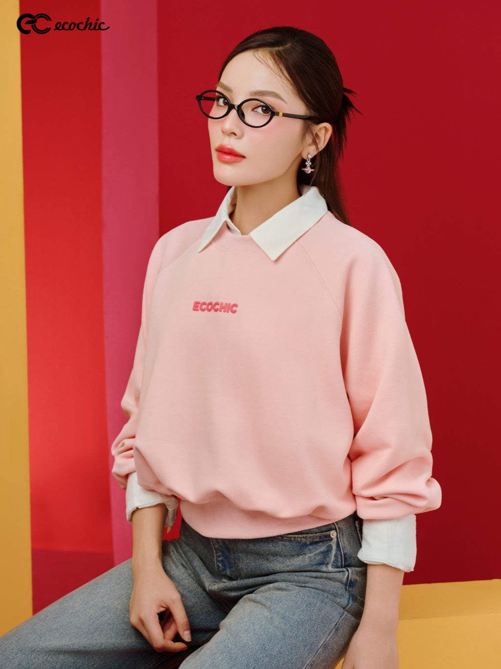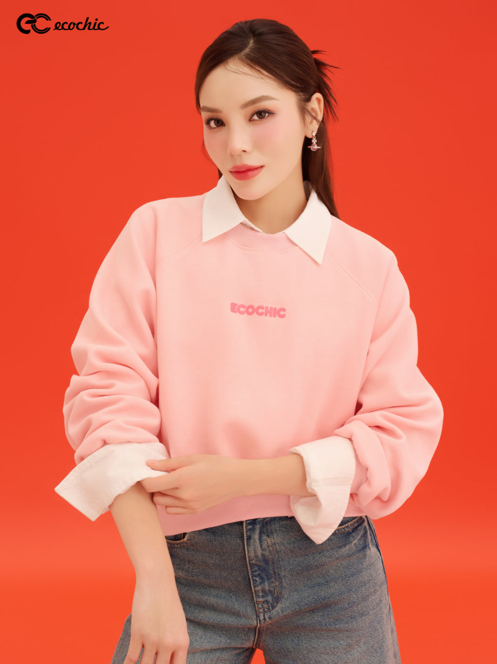 Áo Sweater ECOCHIC ARCTIC BLOOM Basic Cổ Tròn Logo Ngực Chất Liệu Nỉ Hai Da Cao Cấp Chính Hãng B192