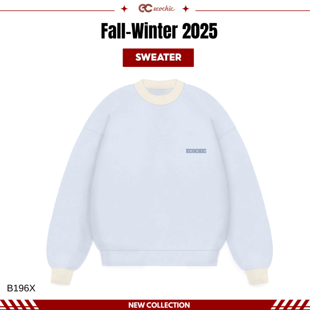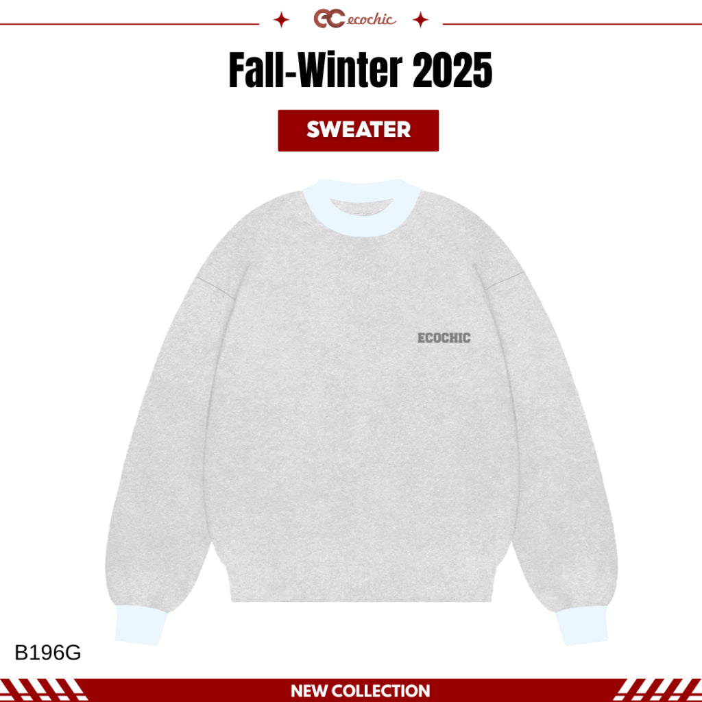Áo Sweater Phối Tay ECOCHIC Form Rộng Basic Chất Liệu Nỉ Bông Mềm Mịn Giữ Ấm Chính Hãng B196