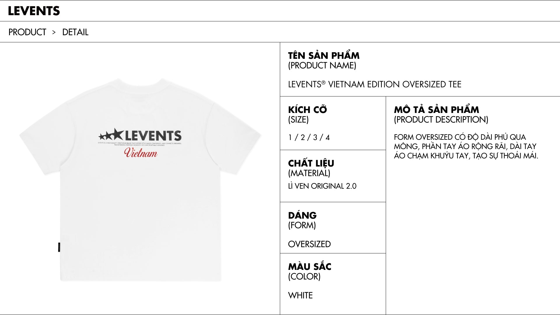 Áo Thun Levents Vietnam Edition Tee/ White 100% Cotton Unisex T-shirt Oversized